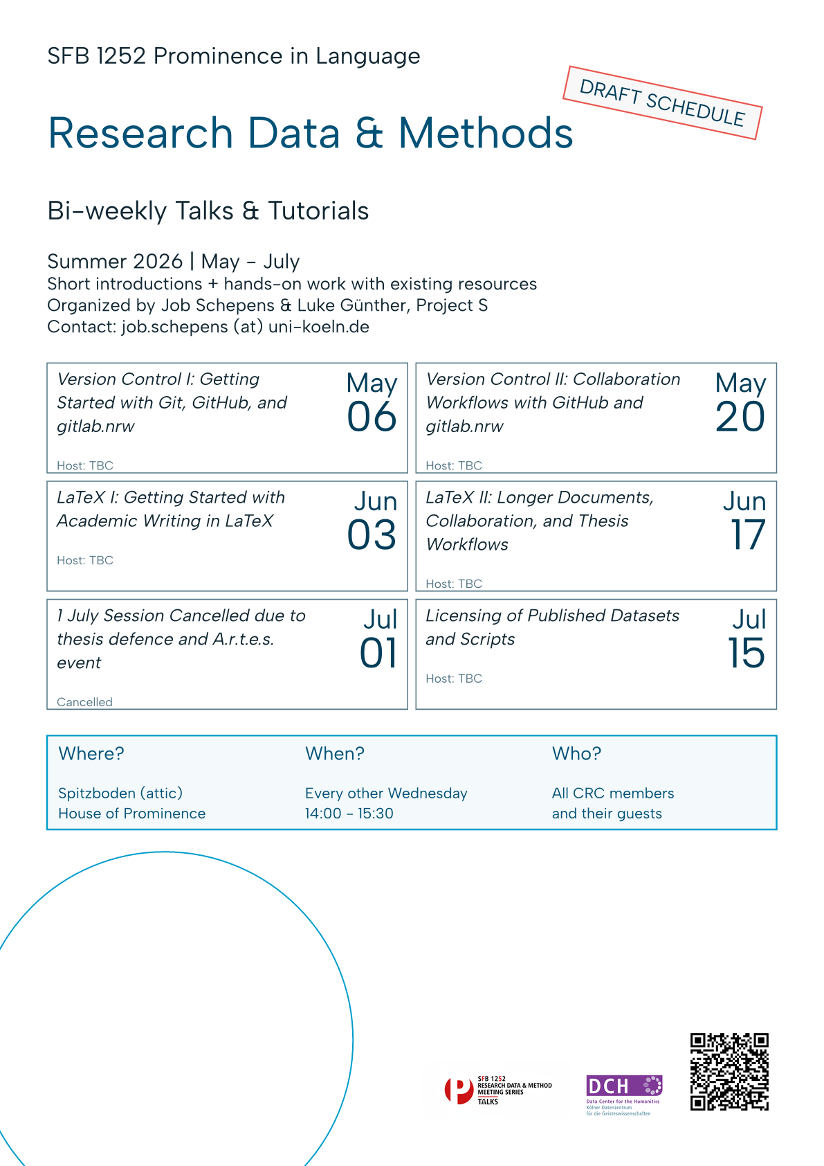- Basic introductions to LaTeX, GitHub, Python, R, AI assistance, annotation tools etc.